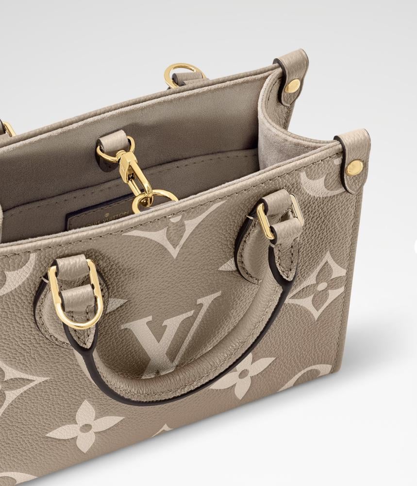 تتوفر حقيبة OnTheGo BB بتصميم عصري مصغر من جلد Monogram Empreinte المزين بنقش Monogram. وتحمل هذه الحقيبة كل التفاصيل التي يشتهر بها الإصدار كبير الحجم - بما في ذلك حوامل اليد المميزة والعروات الجلد المثبتة على الزوايا - وتتسع لهاتف ذكي ومحفظة صغيرة الحجم. أمّا الحزام الذي يمكن إزالته وتعديل طوله فيمنحك خيارات متعددة لحمل الحقيبة.
