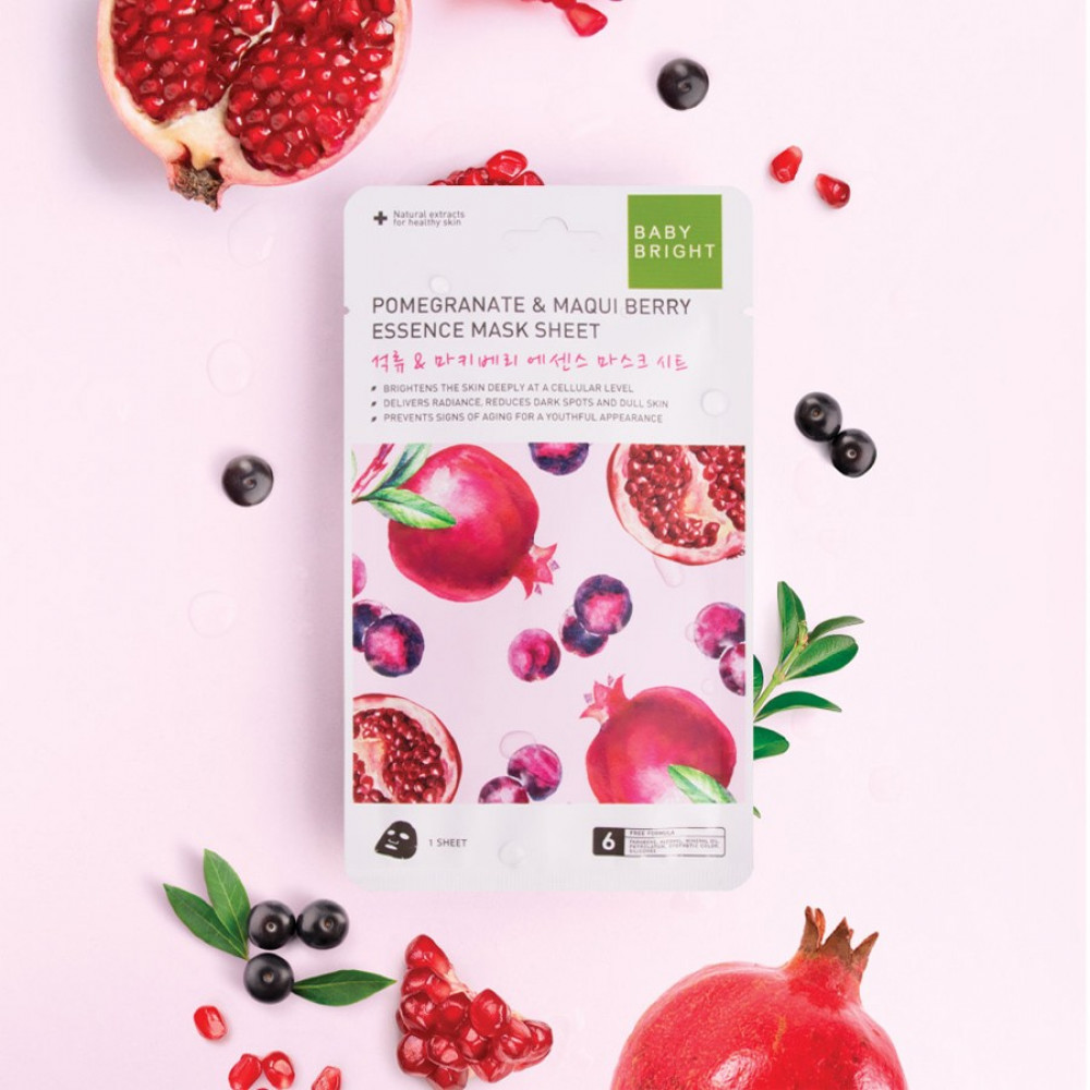 تساعد ورقة قناع Baby Bright Pomegranate Berry Essence المعززة للإشراق في تفتيح البشرة بعمق لتزويدها ببشرة متوهجة طوال الليل بتركيبتها المشعة للبشرة الغنية بمضادات الأكسدة من الرمان. بالإضافة إلى ذلك ، فهو غني بفيتامين C ومضادات الأكسدة المركزة (ORAC-H) من Maqui Berry والتي تساعد في تقليل البقع الداكنة والبهتان وكذلك منع التجاعيد المبكرة للحصول على مظهر شبابي عند استخدامها بانتظام.