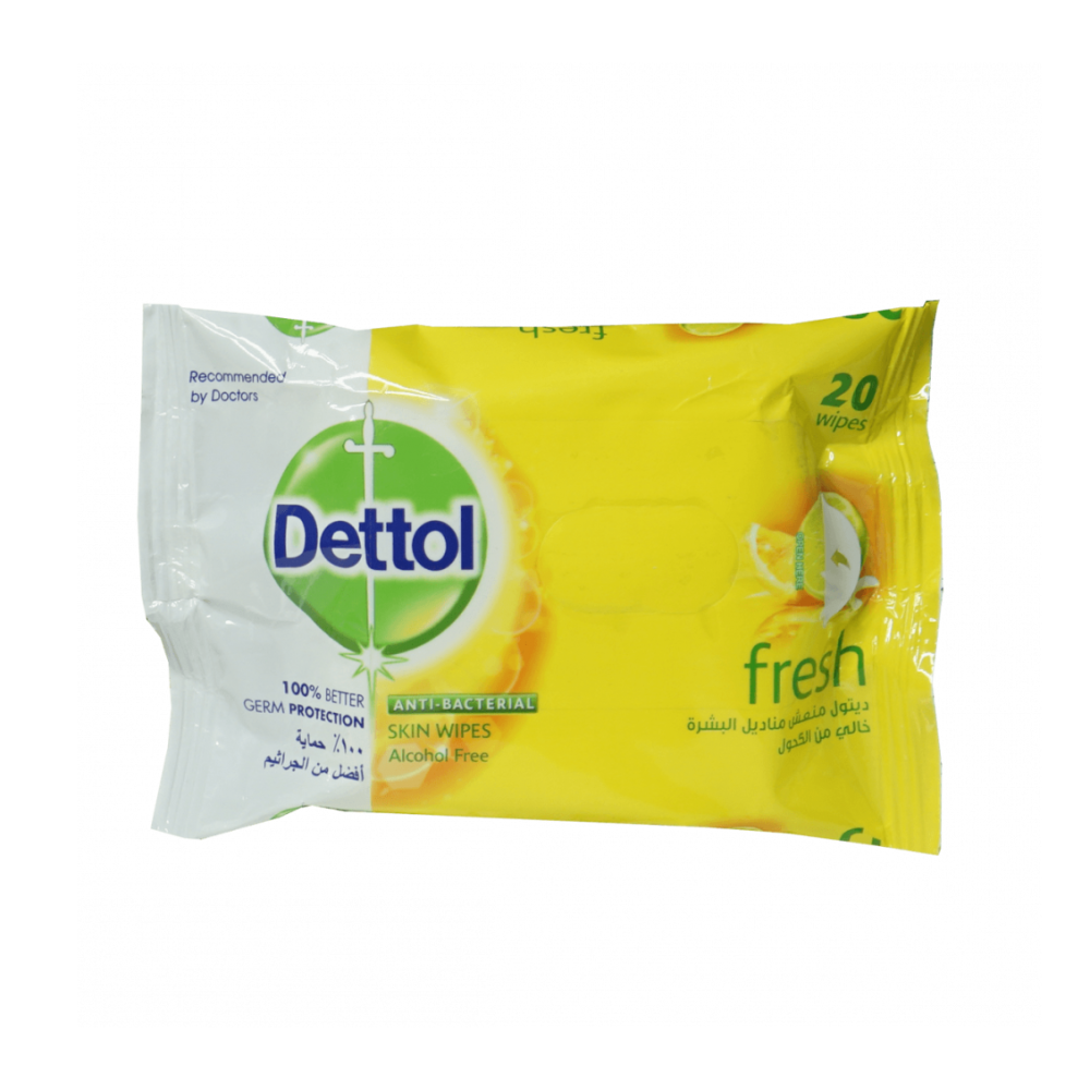 مناديل مبلله منعشه خالية من الكحول من ديتول 20منديل:لينة ورطبة لتكون لطيفة على البشرة توفر حماية من الجراثيم في أي وقت وفي أي مكانلا يترك بقعاً بالبشرة
